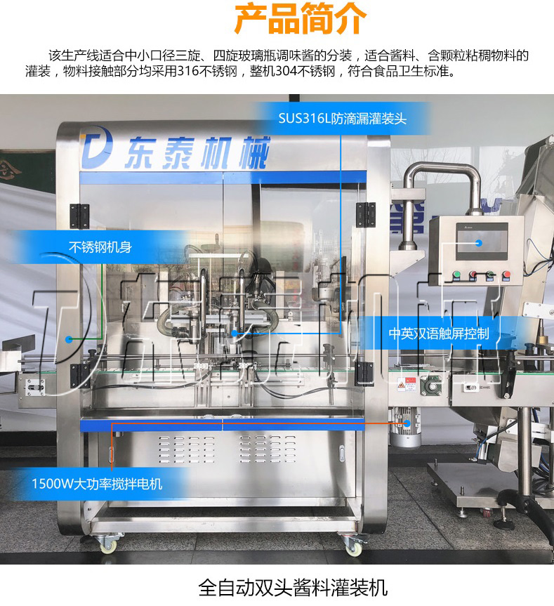 目前的生活水平的提高,也致使了更多人開始在吃上做起文章。生活中的人們對(duì)于吃的要求越來越高,對(duì)味道的追求近乎狂熱,如今市場上的辣椒醬灌裝機(jī)在使用過程中操作的實(shí)際操作降低了人員要求并且才做簡單對(duì)操作眼的專業(yè)要求也在不斷降低,這大大節(jié)省生產(chǎn)成本,深受廣大用戶的歡迎。為了保證醬料的效果能夠穩(wěn)定持久,這款辣椒醬灌裝機(jī)裝有接料槽,防止調(diào)試的時(shí)候或者出故障的時(shí)候物料灑地上以及清理麻煩,走進(jìn)超市放眼望去五花八門的辣椒醬,由此可見辣椒醬灌裝機(jī)的未來的潛力有多大的。