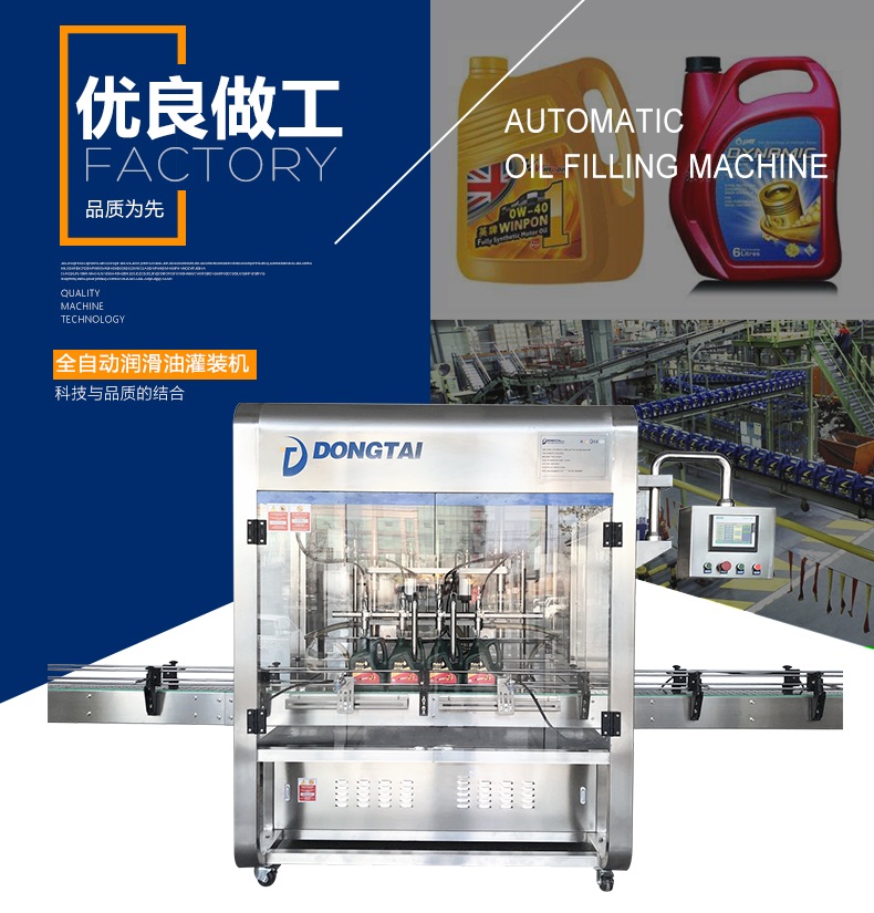 該潤滑油灌裝機集機械、電子、氣動為一體。該生產線由理瓶機、直線式灌裝機、旋蓋機、貼標機、噴碼機等組成。具有自動化程度高、成品率高、適用性廣、穩(wěn)定性好而受到廣大用戶青睞。該生產線能自動完成理瓶、灌裝、旋蓋、貼標、噴碼等功能。裝量精度高、使用使用壽命長、耐高溫、耐酸堿,填補了內空白。適用于油類半流體等不同粘度物料的灌裝,充分體現(xiàn)了本公司在產品設計、制造上的優(yōu)勢。灌裝系統(tǒng)采用PLC微電腦、人機界面組合控制、操作簡單、維護方便。所有接觸物料部分的材料和裝潢材料全部采用優(yōu)質不銹鋼制造,表面進行了拋光處理,外形美觀、大方,不污染環(huán)境,符合GMP要求。